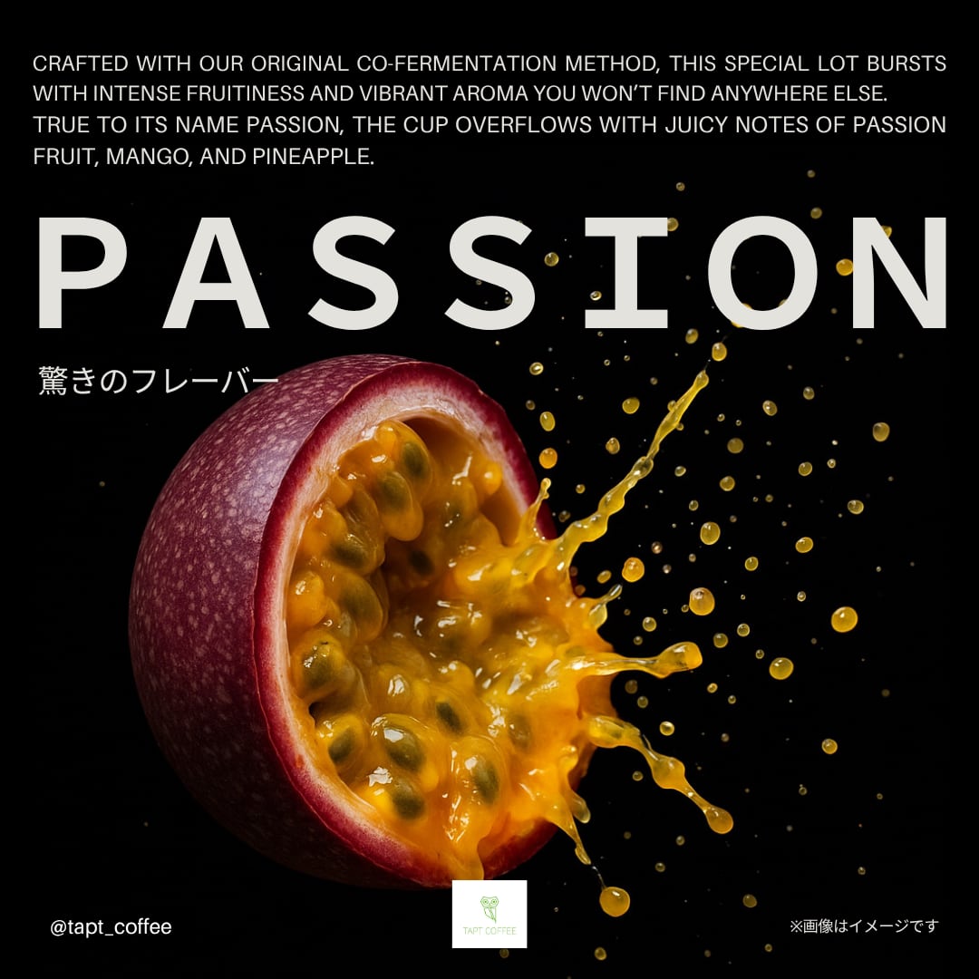 PASSIONの名の通りパッションフルーツ、マンゴー、パイン等、ジューシーな果実風味を味わえるコーヒーです。