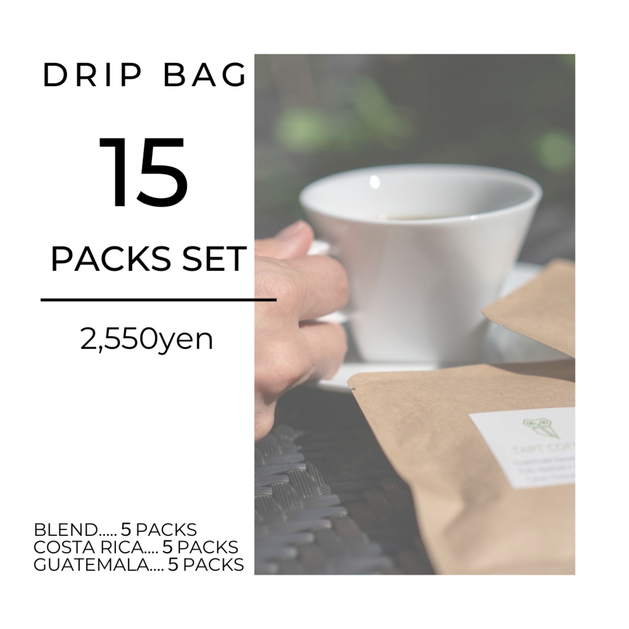 ※各種から組み合わせも自由にできます。商品のDripBagから各種選択して購入も可能です。